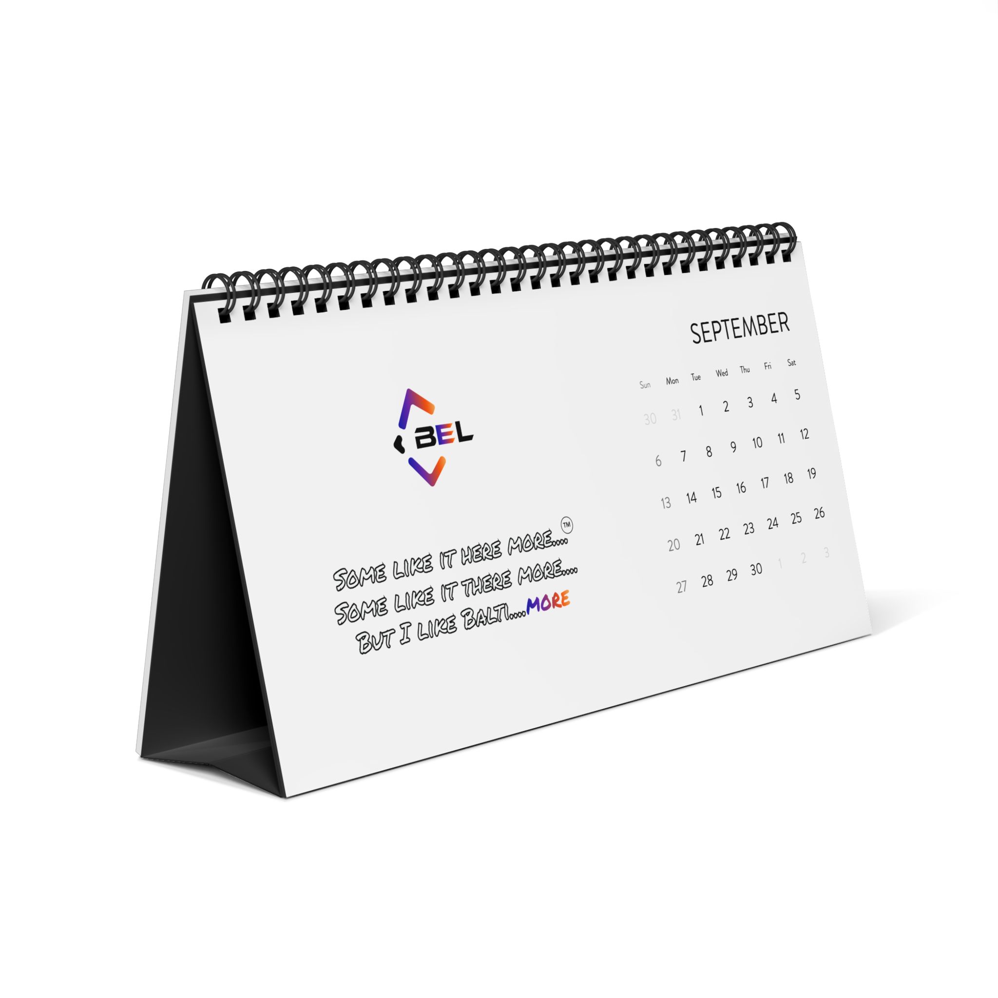 A compact desktop calendar designed to sit neatly on any workspace, offering the full 2026 month grid in a clean, modern layout. The matte 250 gsm pages produce vibrant, true-to-design colors while resisting glare. A sturdy black metal spiral and tent-card backing keep pages secure and upright, making flipping between months effortless. Sized at 10″ x 5″ (25 x 12.5 cm), it’s small enough for tight desks yet large enough to view dates at a glance. Made with U.S.-sourced paper and assembled in the USA, it blends practical function with a polished, minimal aesthetic that complements creative studios, home offices, and giftable bundles for schedule-keepers.